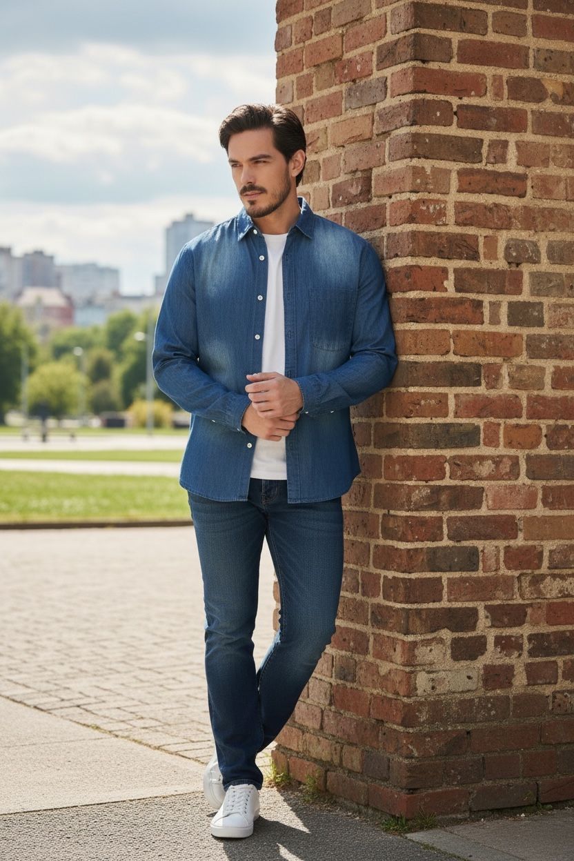 DNJ052 Chemise légère, droite, manches longues 100% Coton