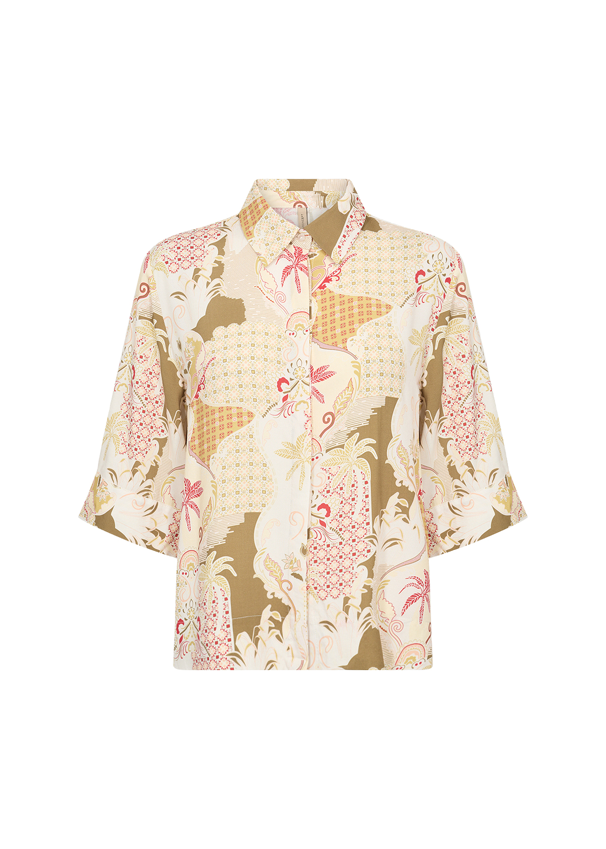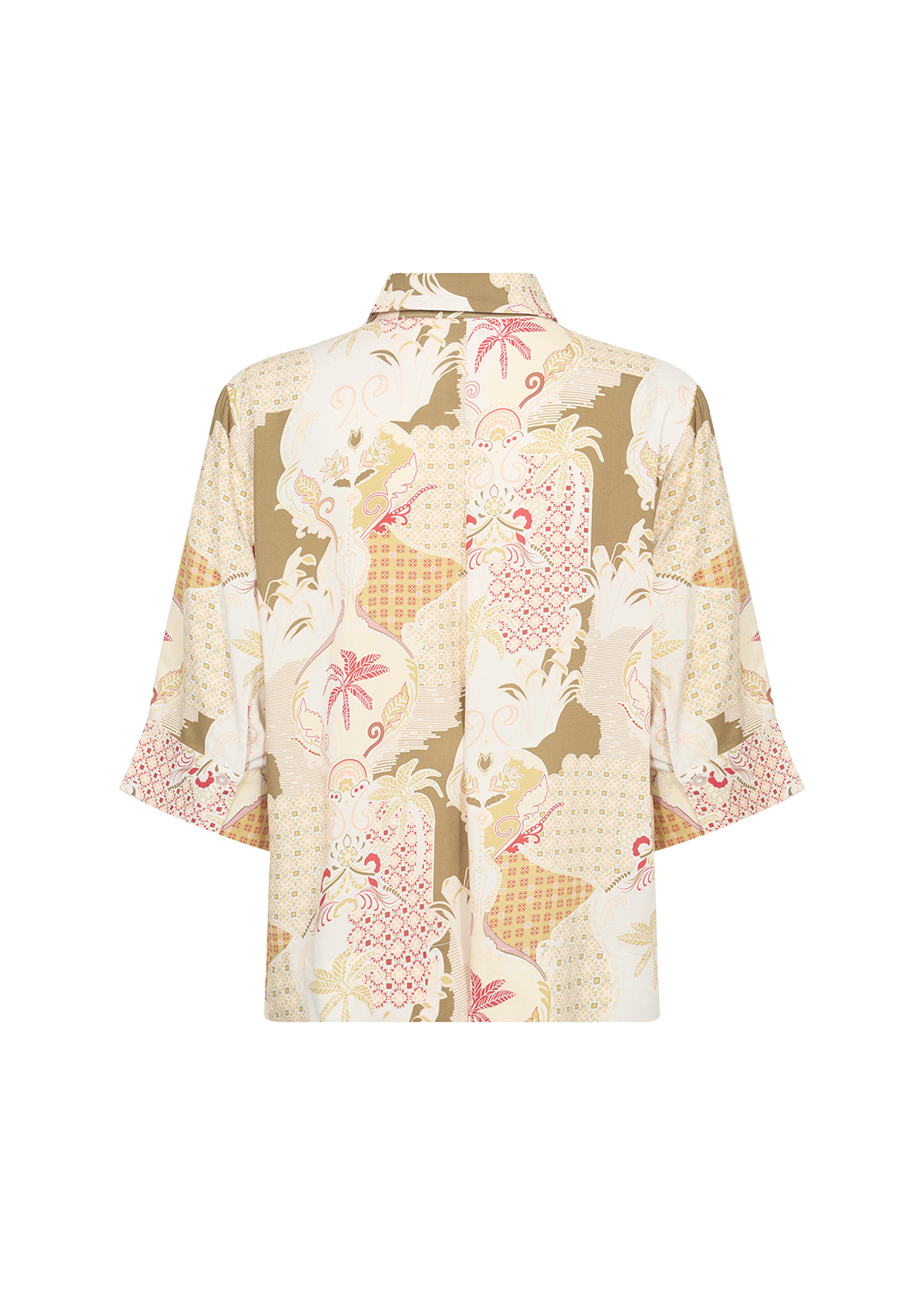 41769 Chemise droite et large, imprimée, fendues sur les côtés, manches 3/4 100% Viscose