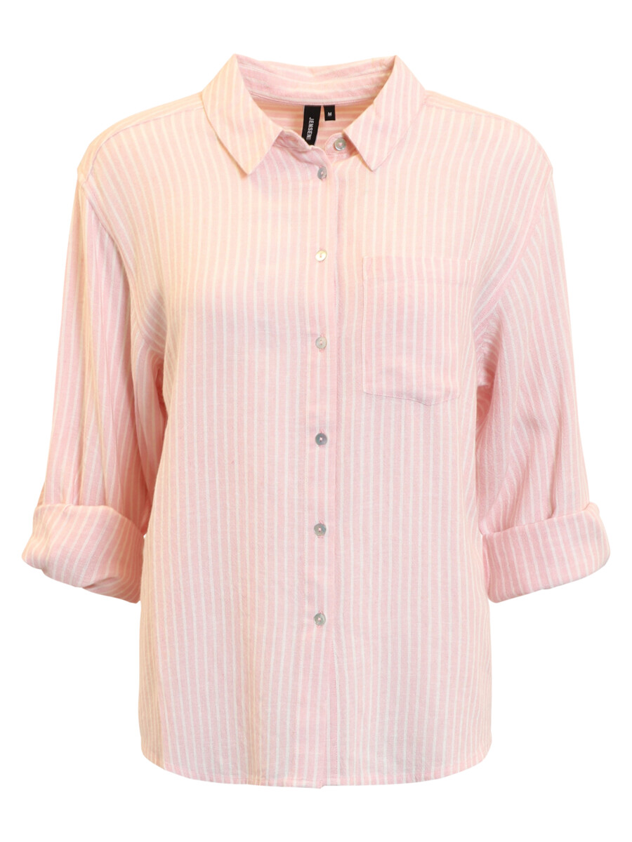 Chemise droite, rayée, une poche sur la poitrine à gauche, manches longues