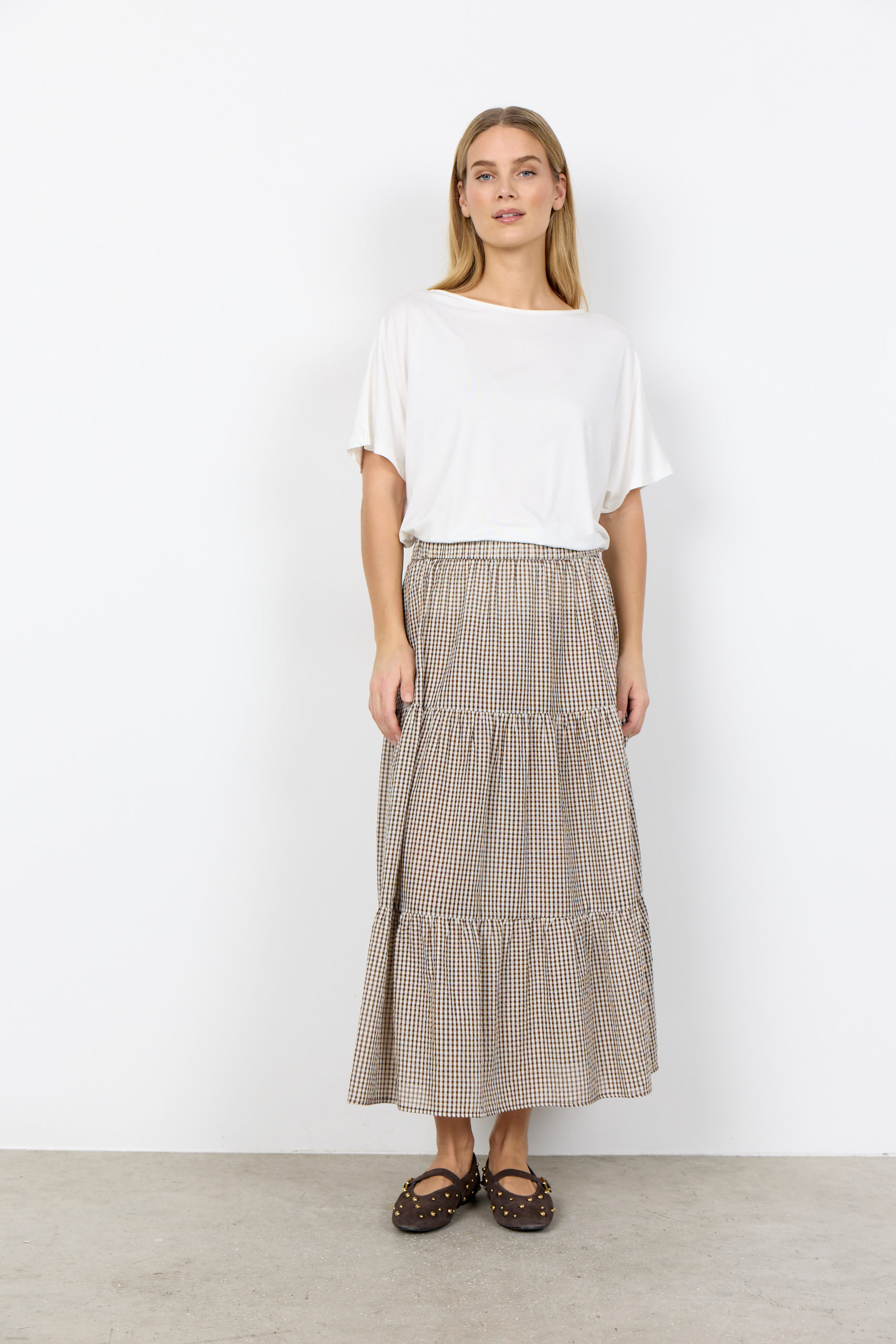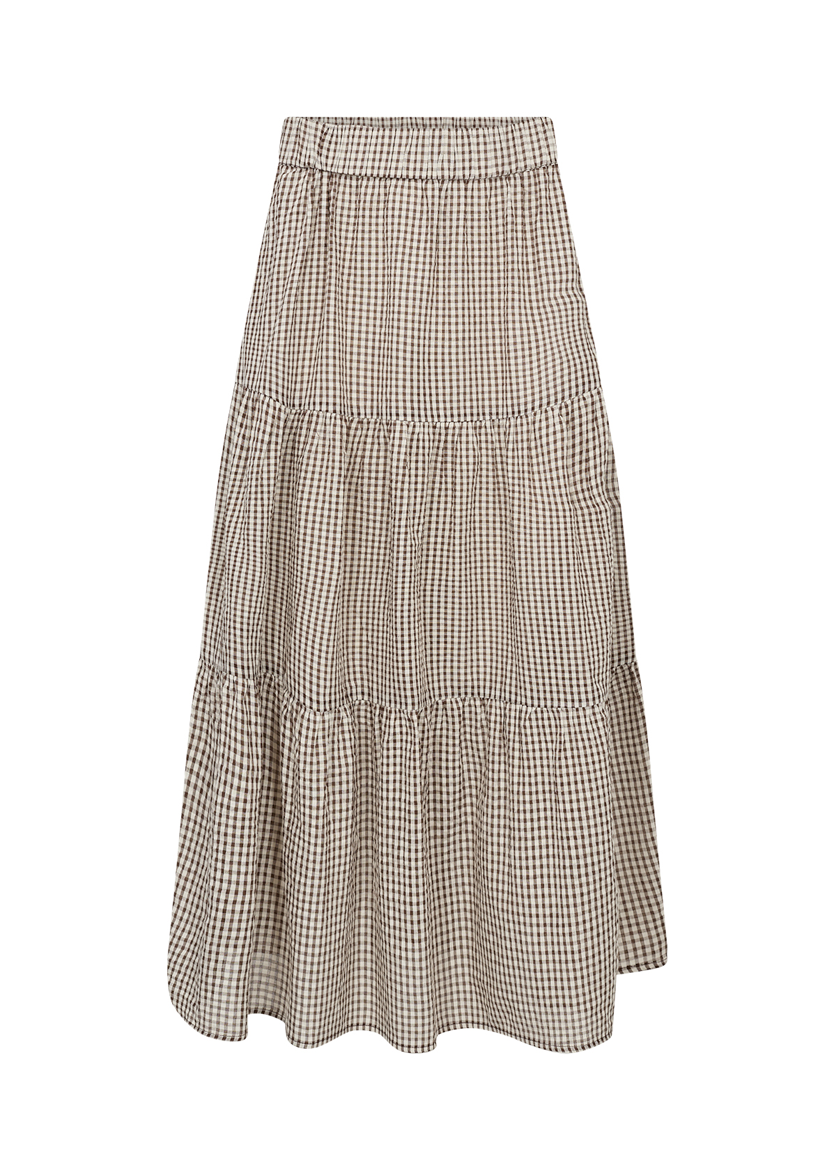 41790 Jupe longue, vichy (marron/beige), taille élastique, doublée en viscose 100% Coton organique