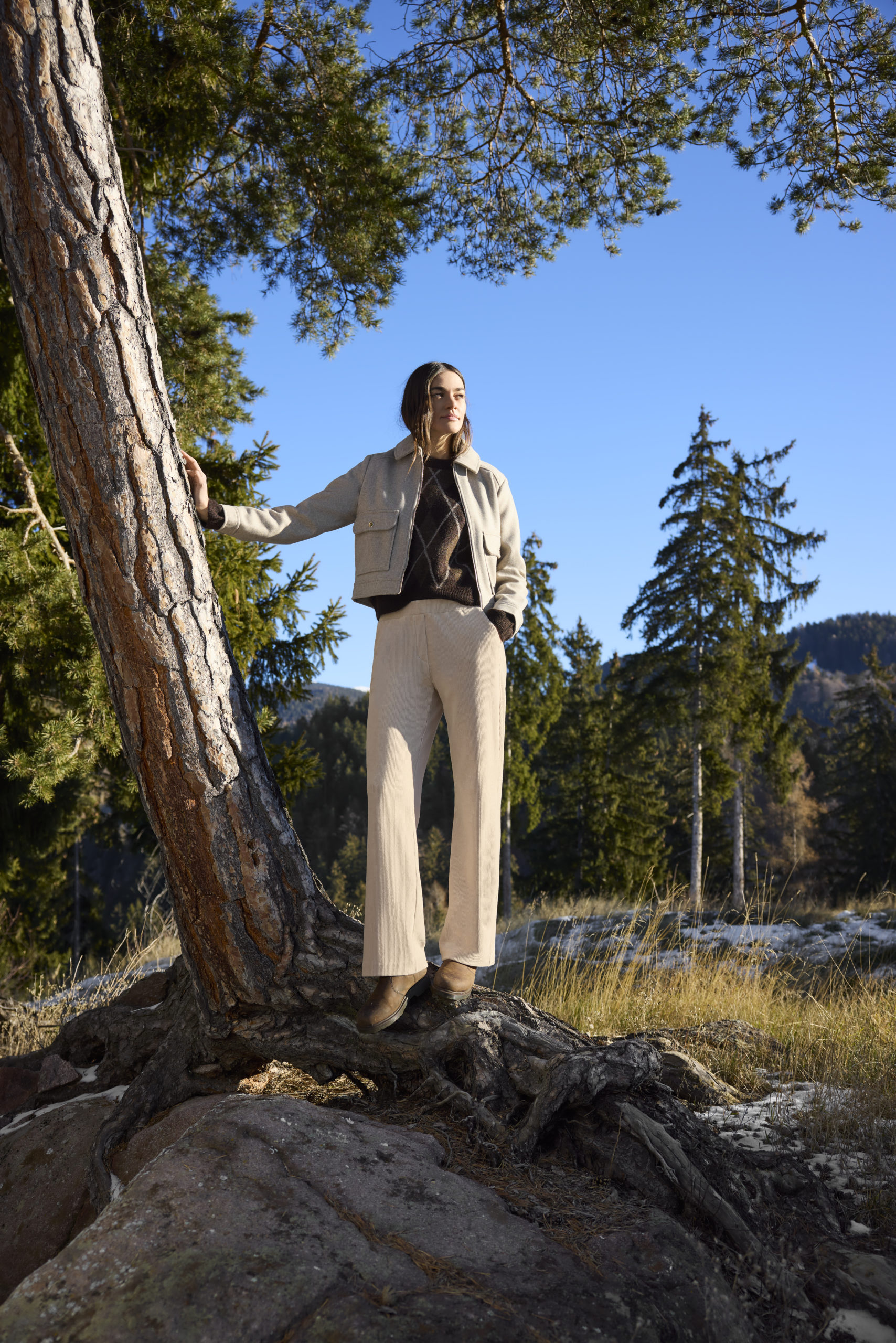 Pantalon droit en velours, grosses côtes, jambes larges, taille élastique plate, 2 poches