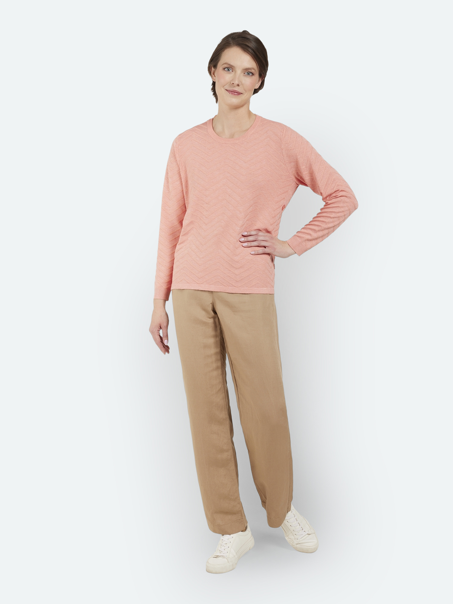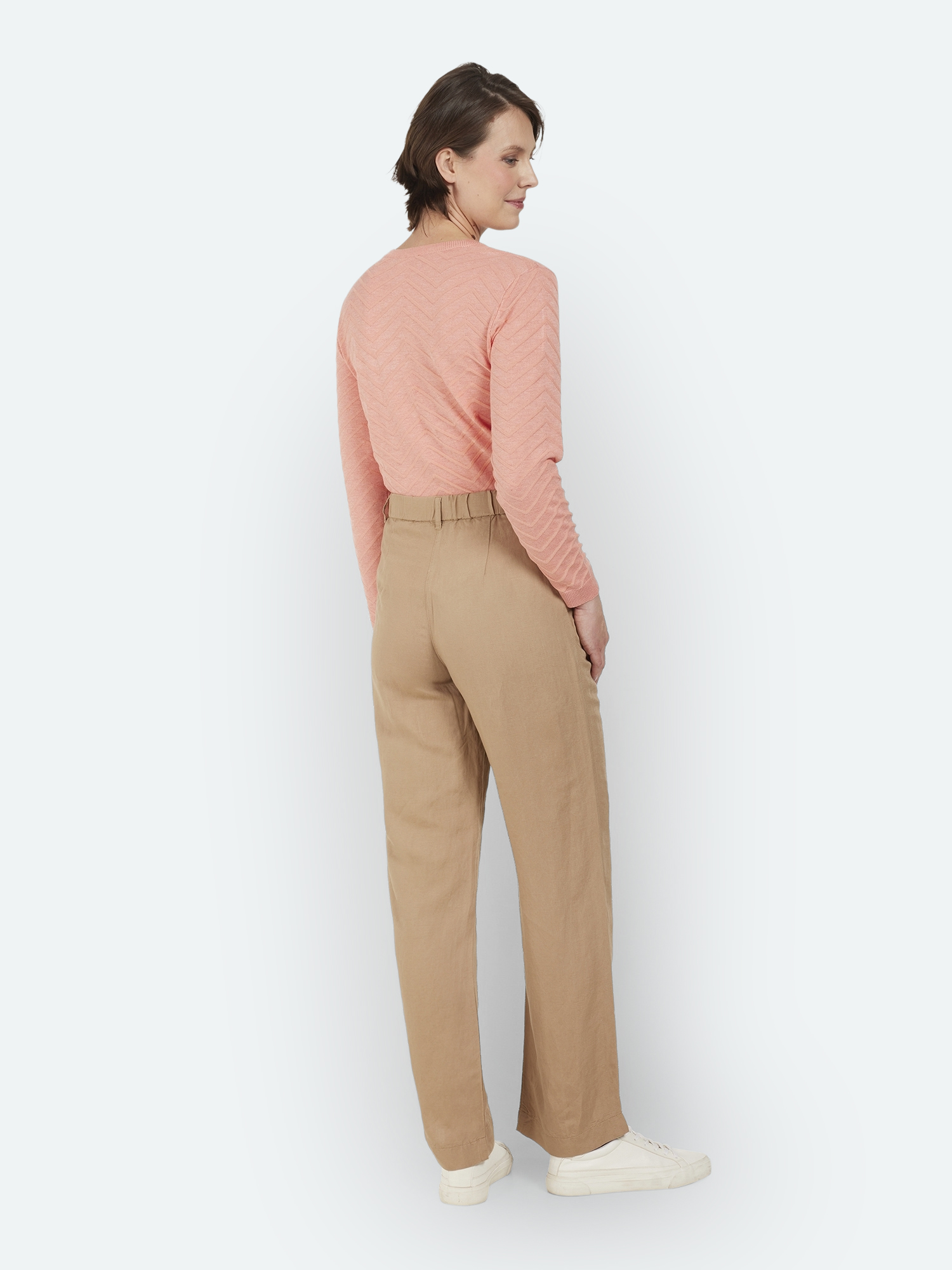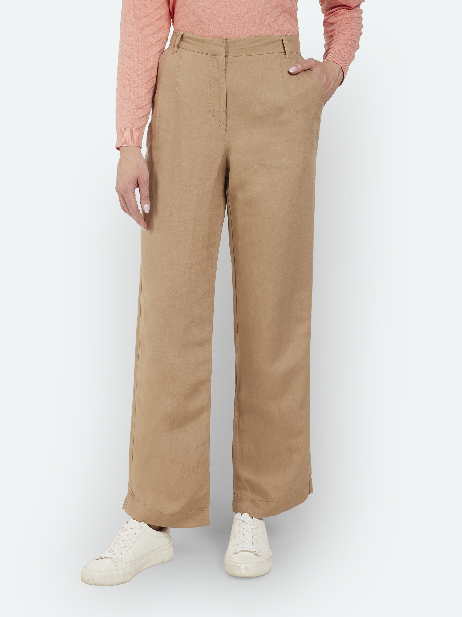 218460 Pantalon large, uni, élastiqué dans le dos, 2 poches 55% Lin 45% Viscose