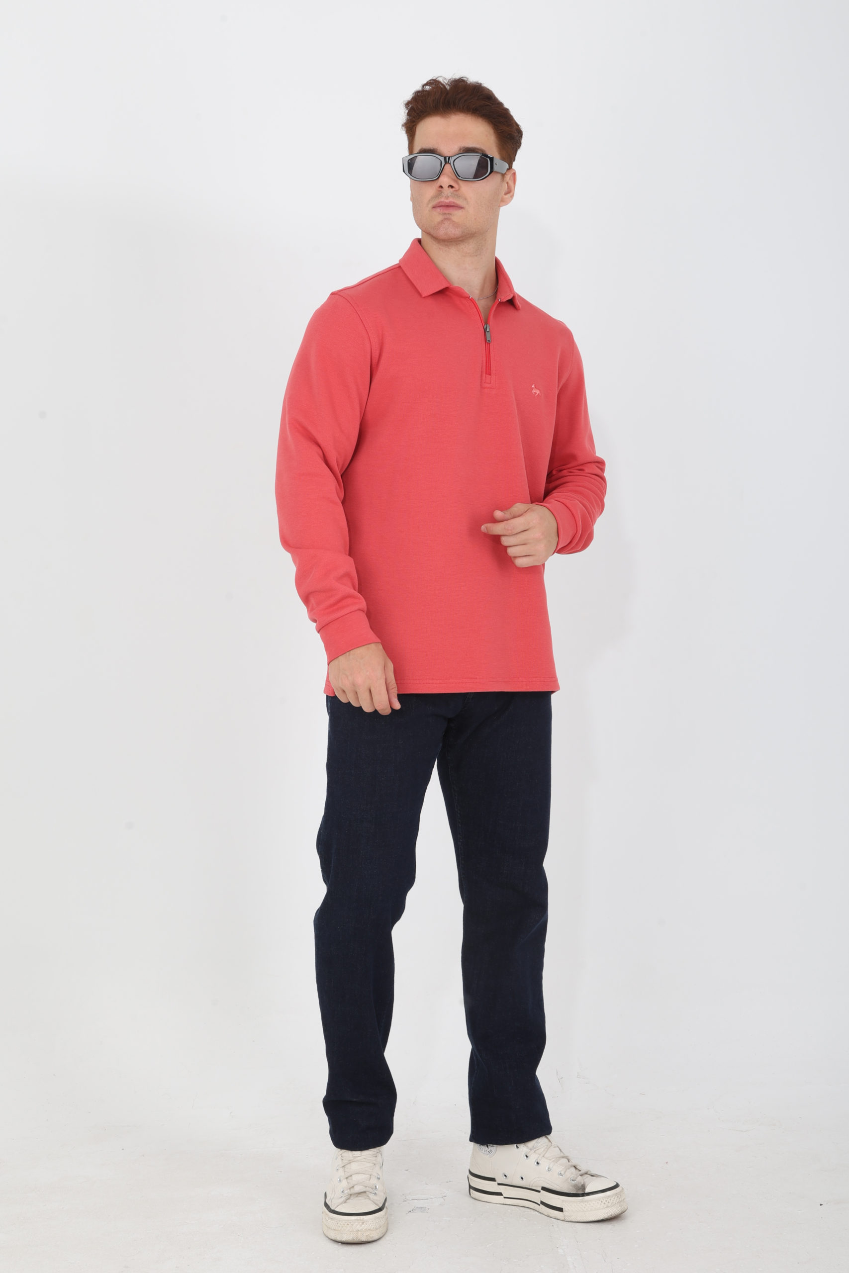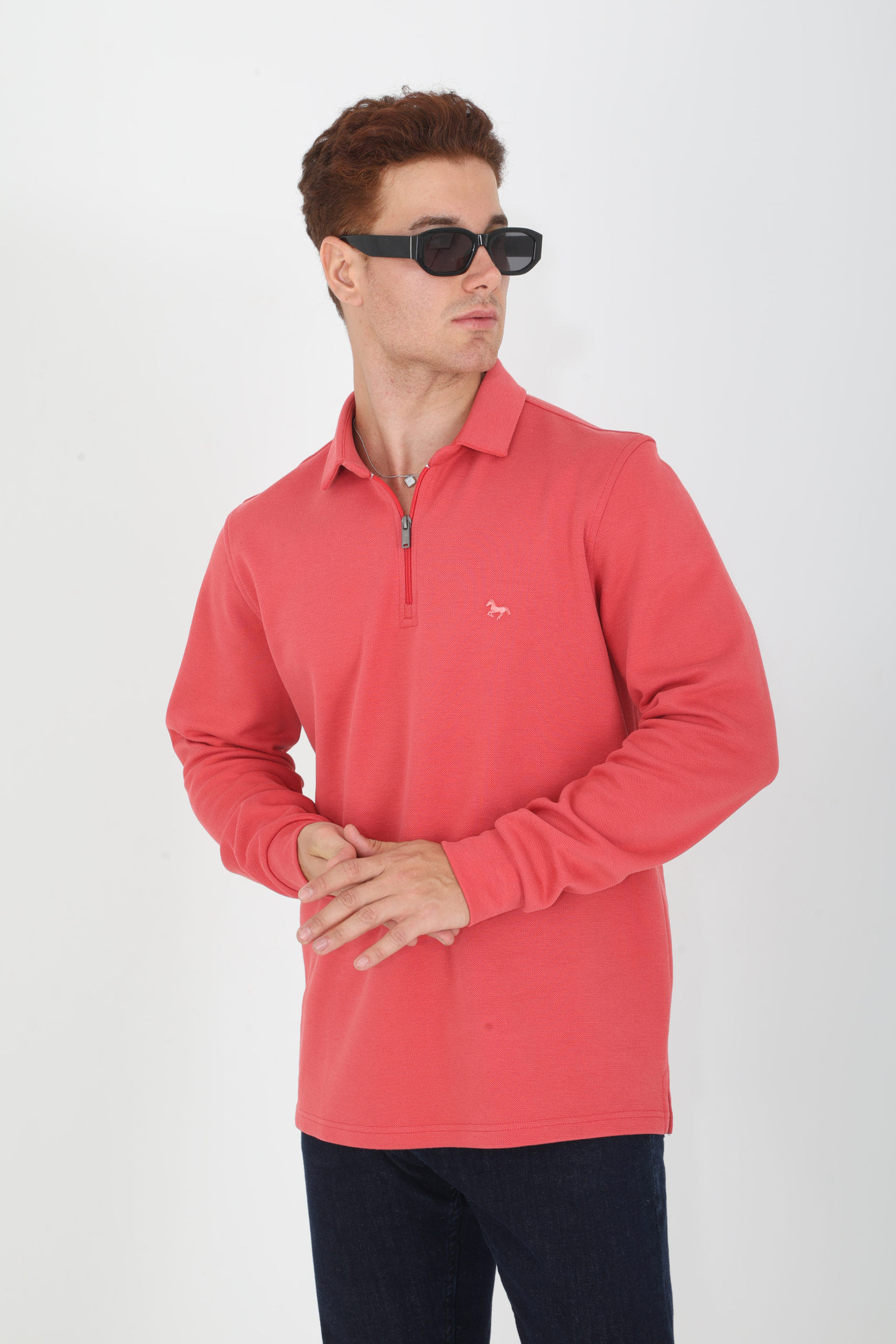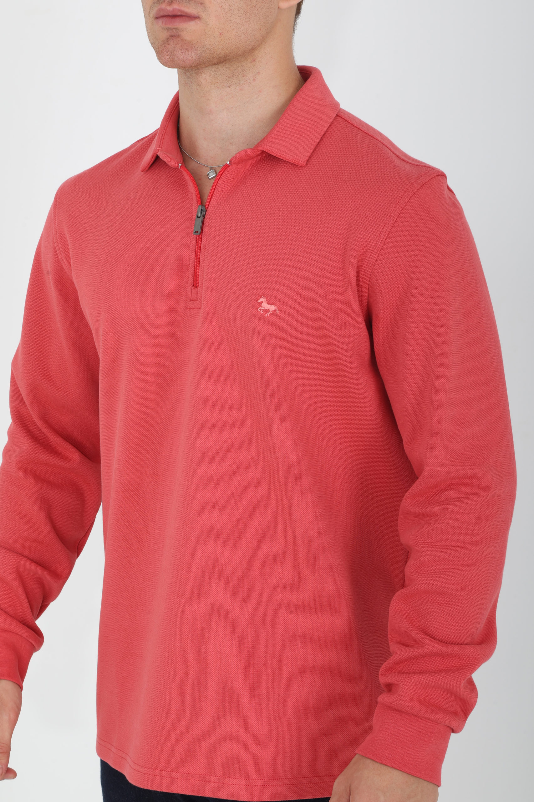 24504 Polo en maille piquée, zip, petites fentes sur les côtés 80% Coton 20% Polyester