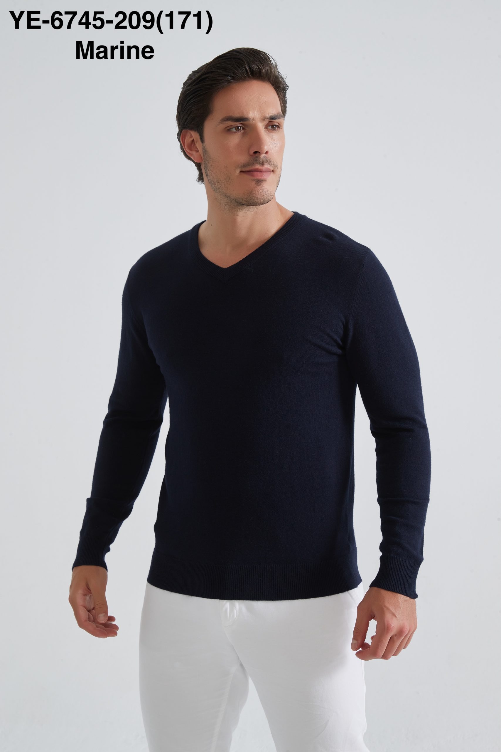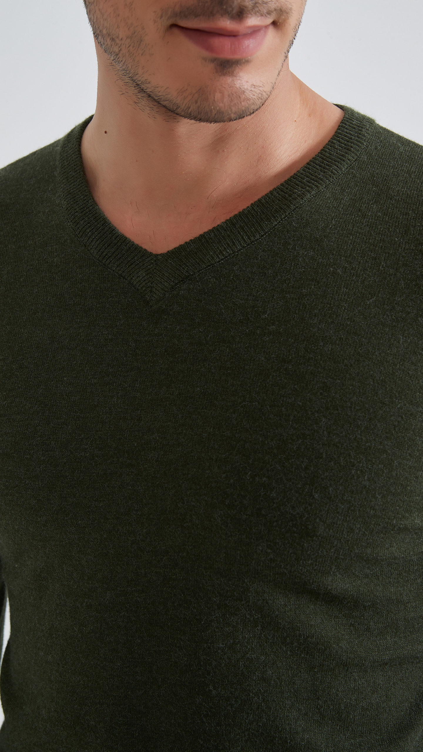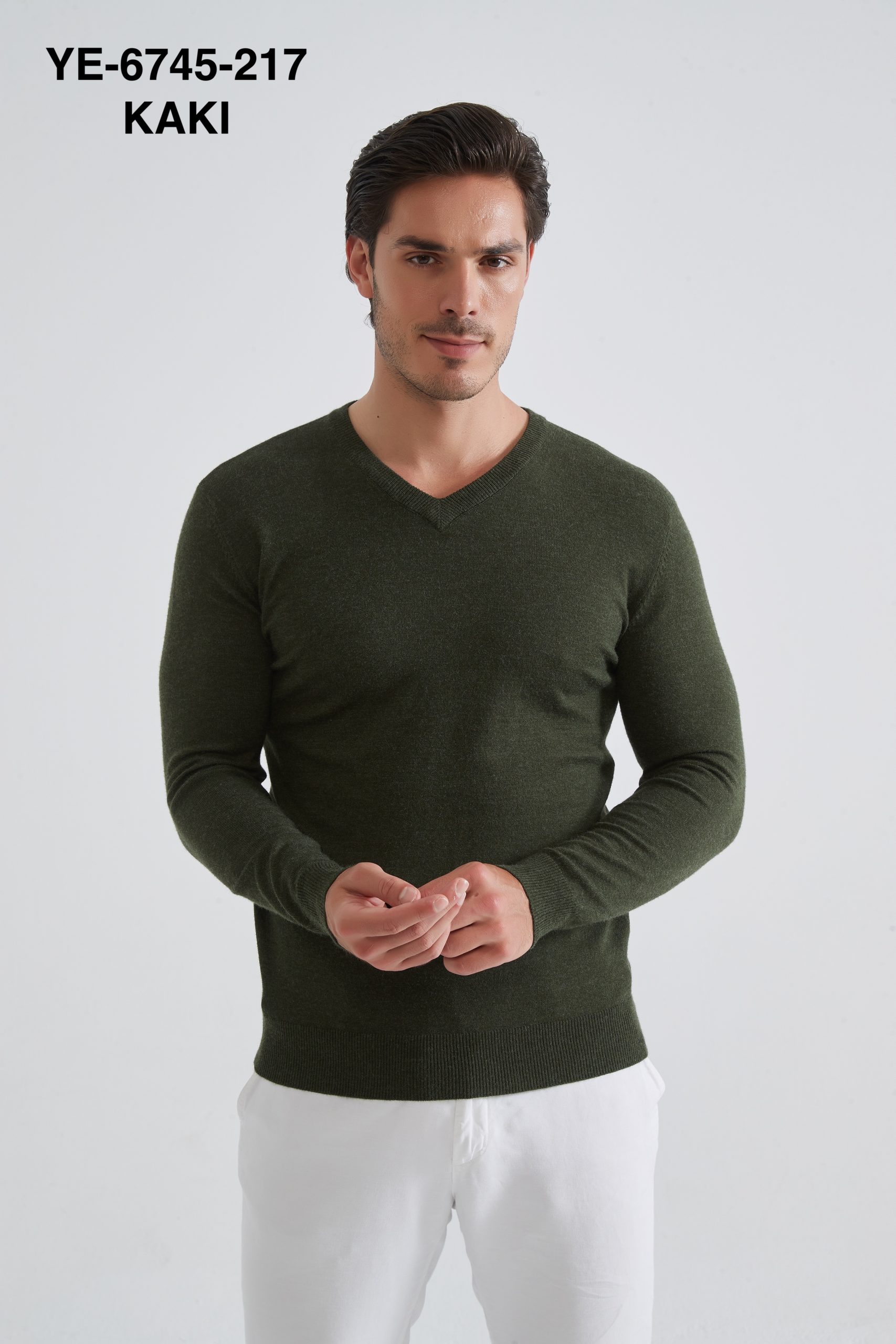 YE6745 Pull uni, près du corps, toucher cachemire, col V 58% Viscose 27% Polyester 15% Polyamide