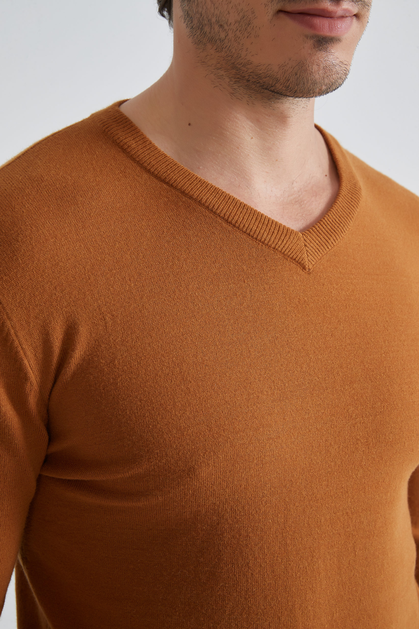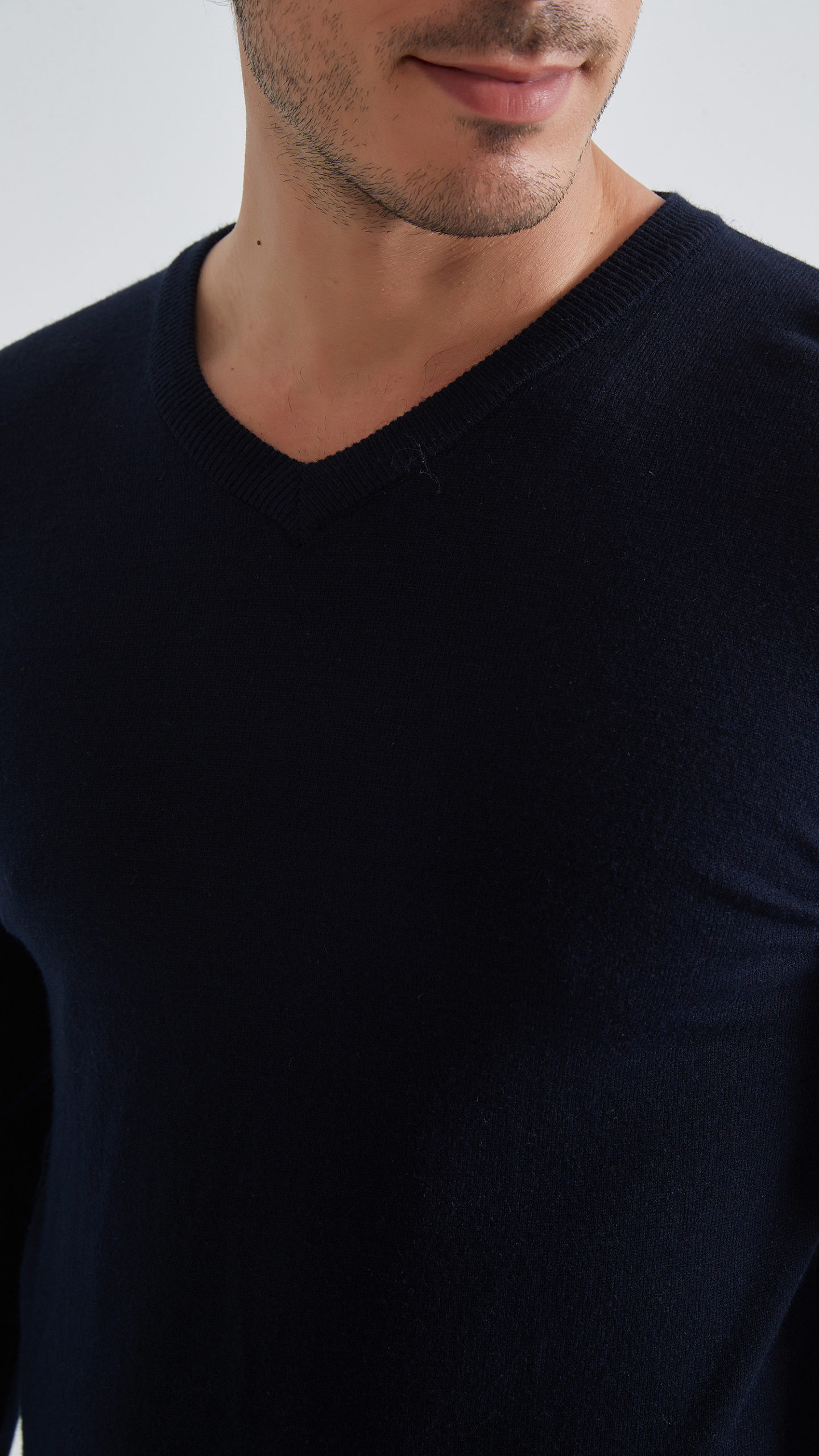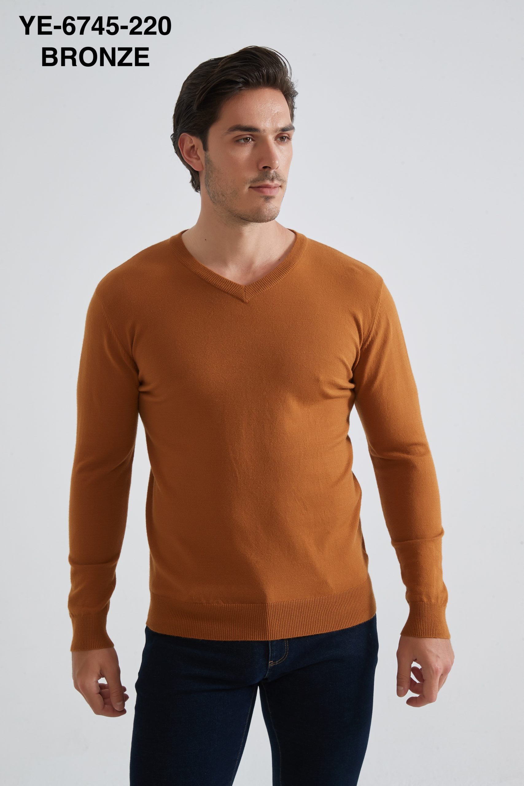YE6745 Pull uni, près du corps, toucher cachemire, col V 58% Viscose 27% Polyester 15% Polyamide