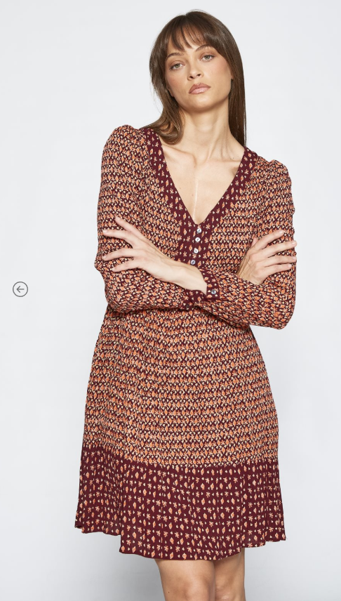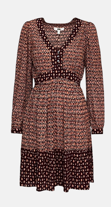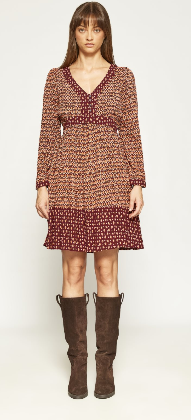 37568901 Robe fluide, imprimée, col V, manches longues 100% Viscose