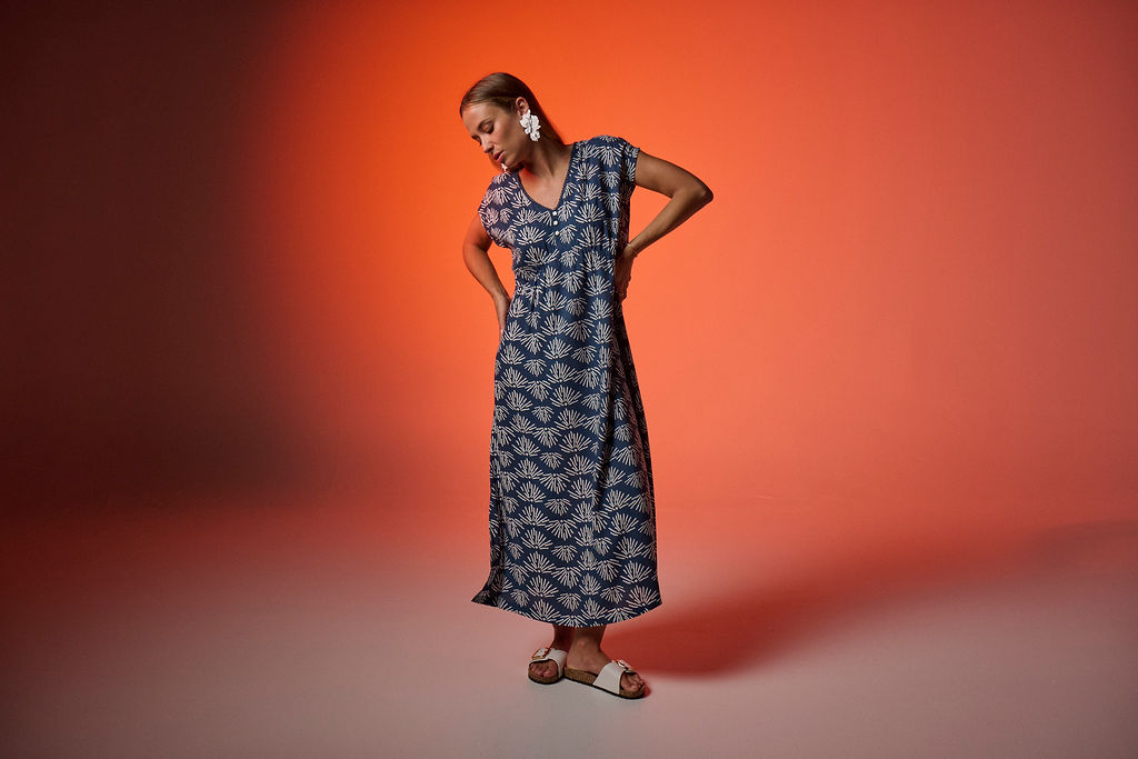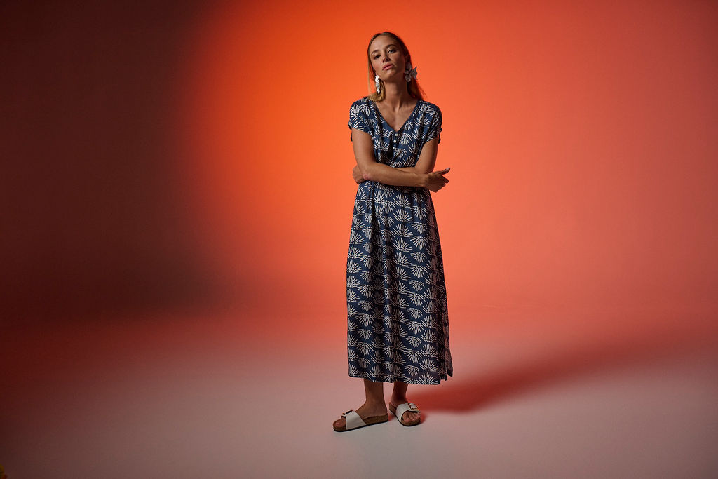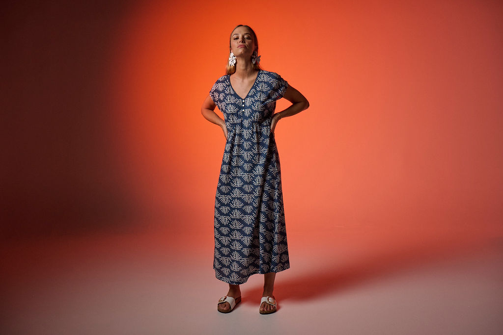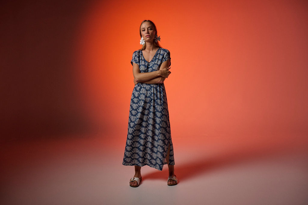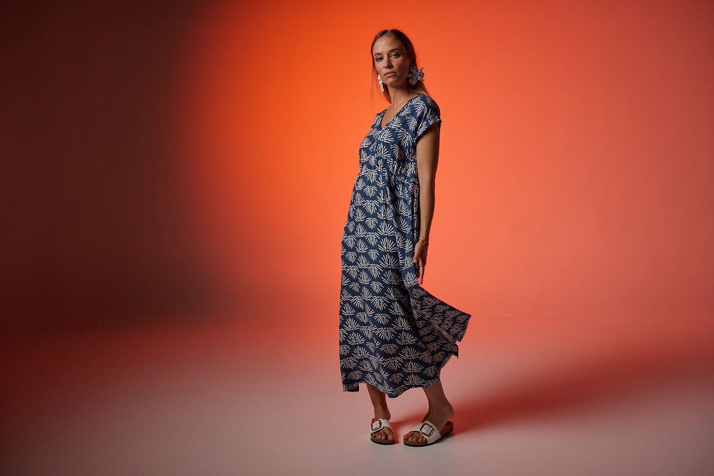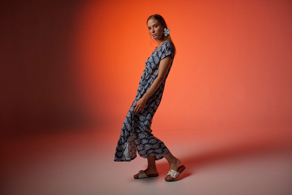 ETYRAFAEL Robe longue, fendu sur les côtés, col V, manches très courtes 100% Viscose