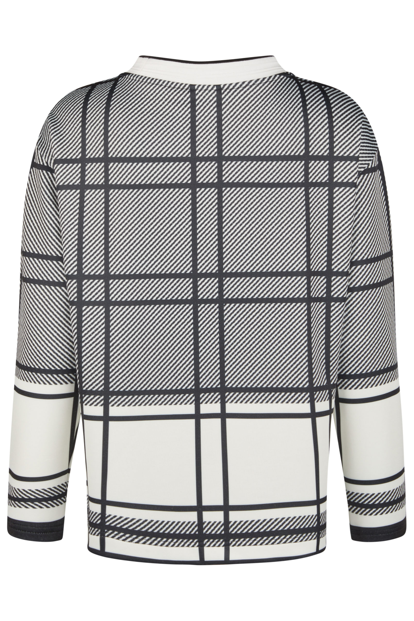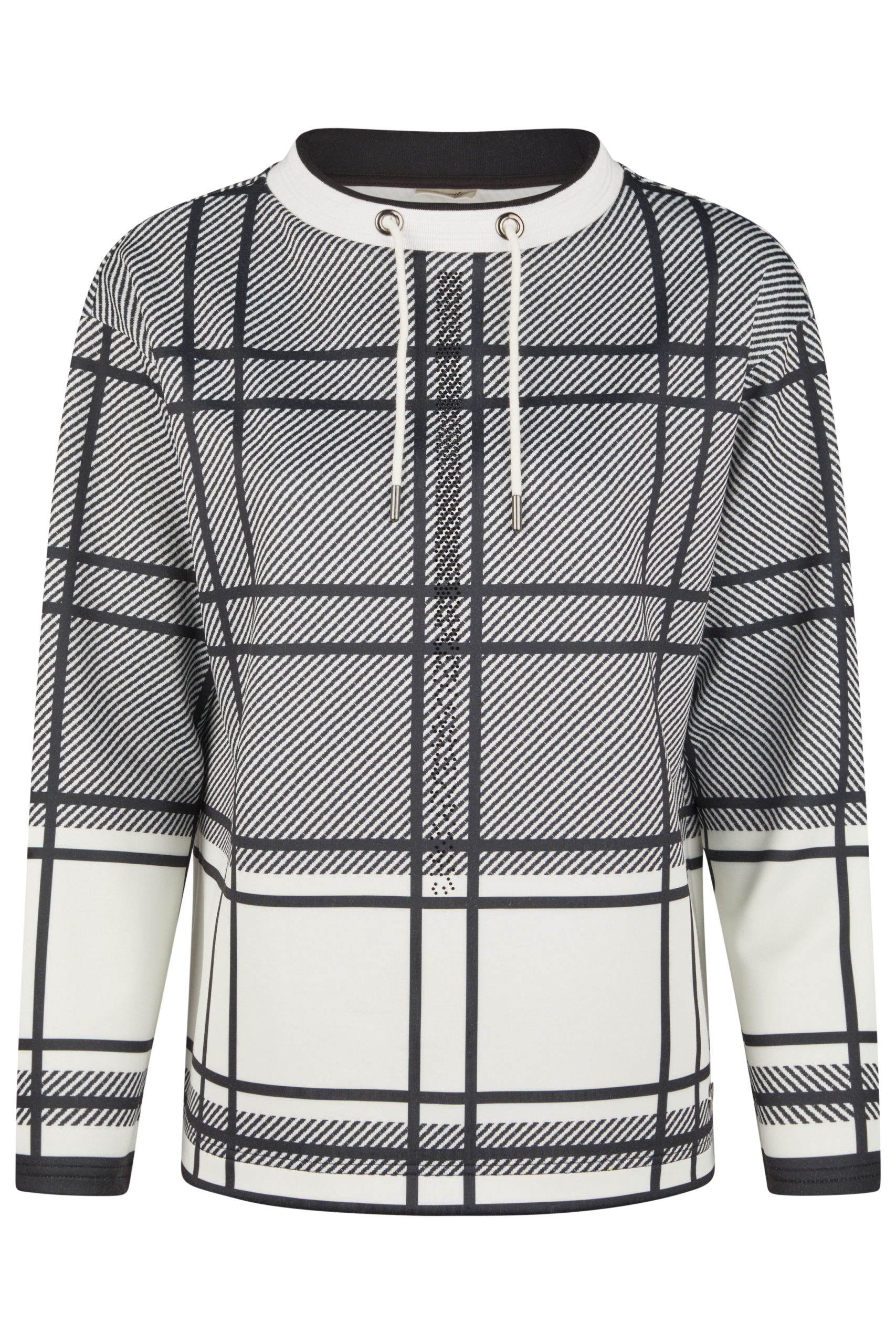 Sweat élégant, imprimé carreaux, petites fentes sur les côtés, col rond avec lacet
