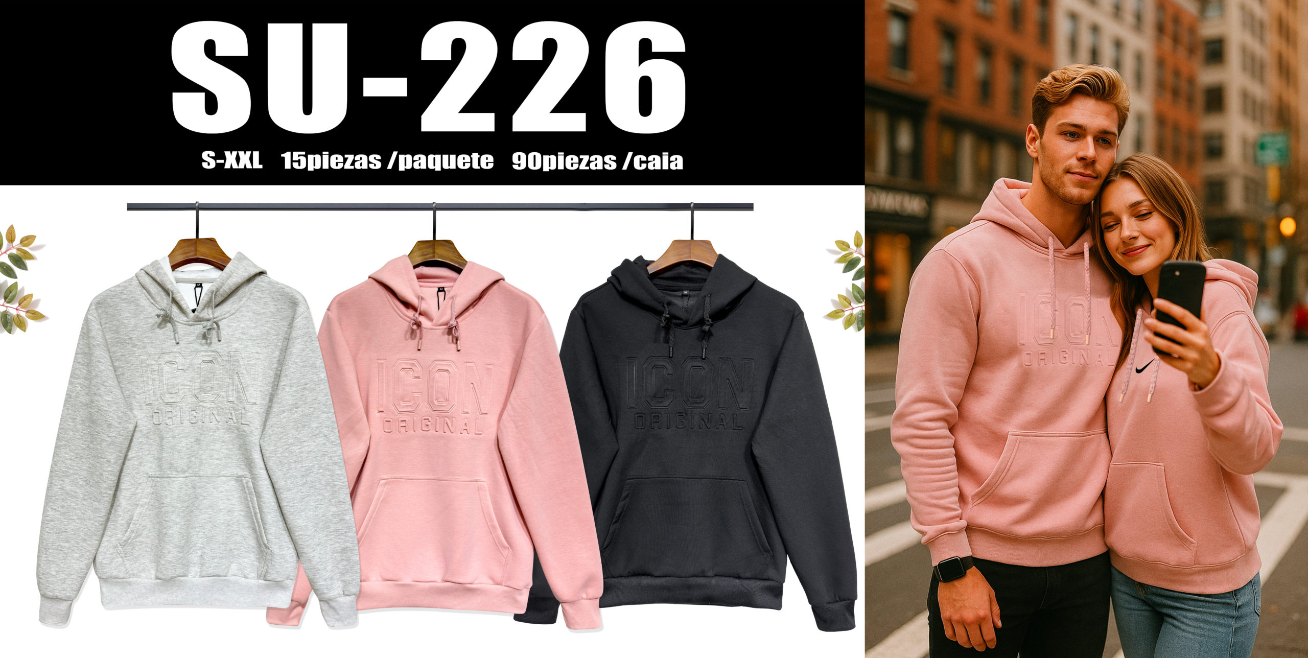 SU226 Sweat à capuche, uni, poche sur le ventre 65% Coton 35% Polyester
