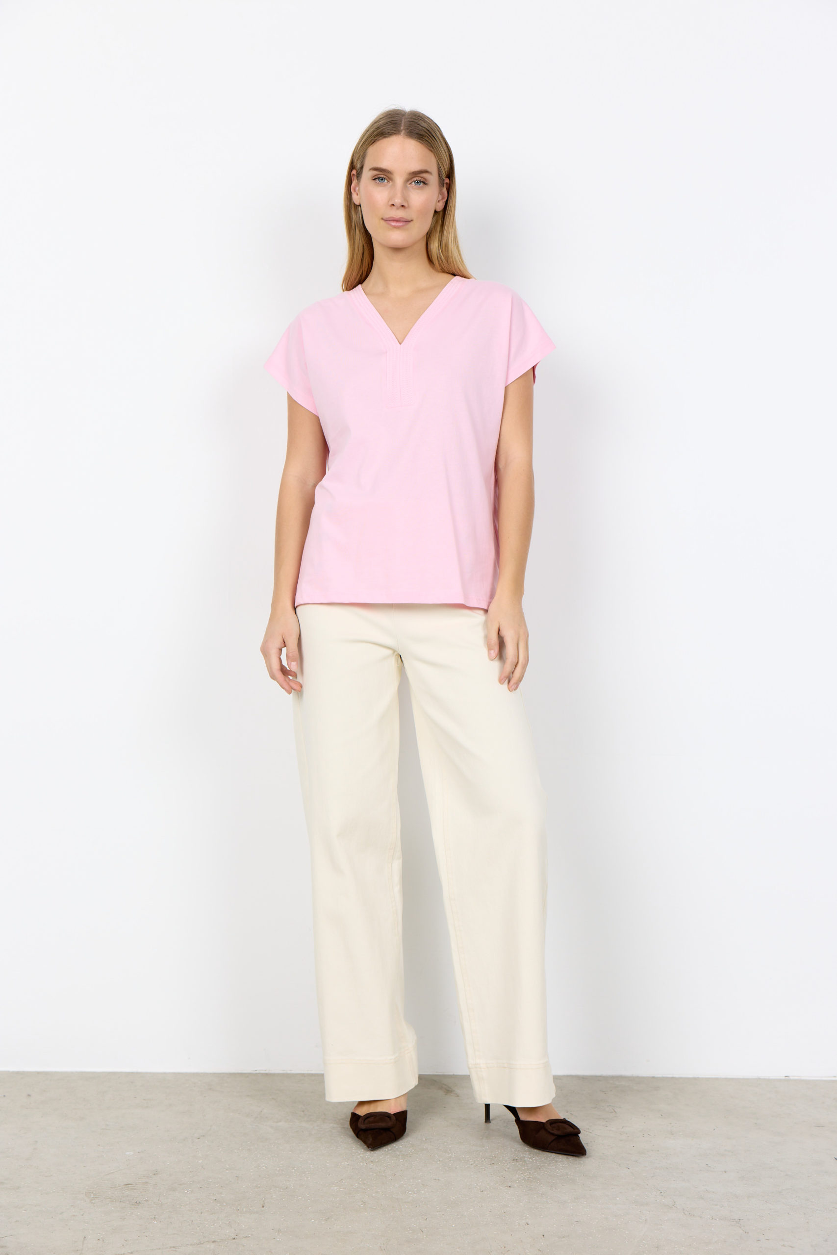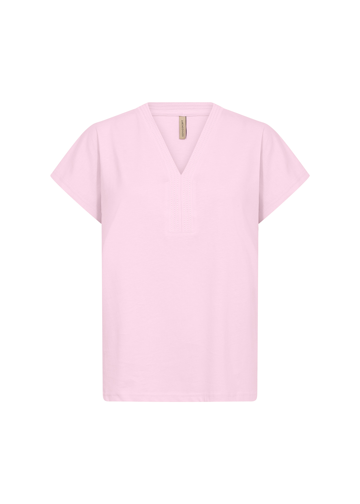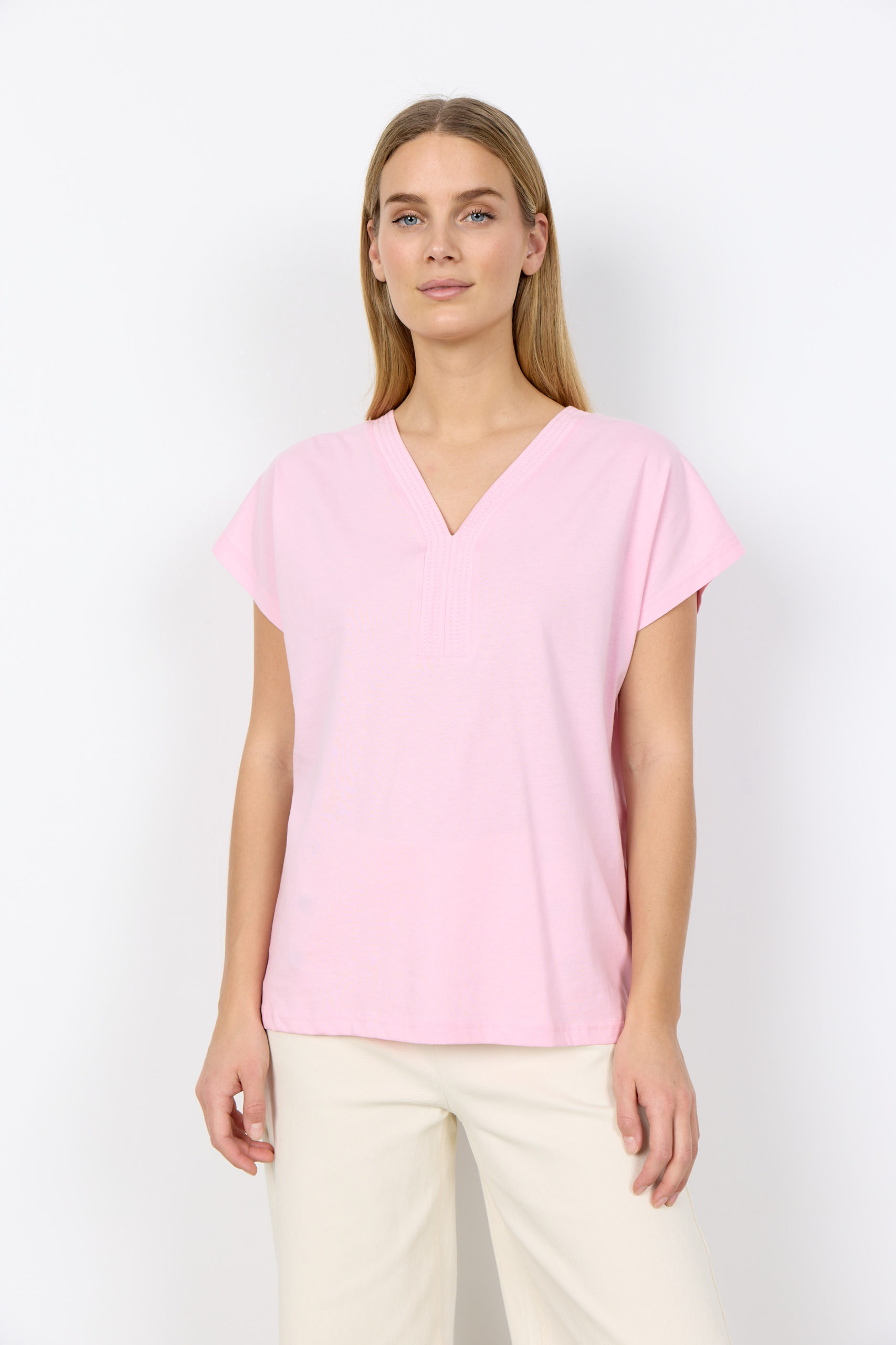 27476 Tee-shirt uni, fendu sur les côtés, coupe droite, col V, manches très courtes 100% Coton organique