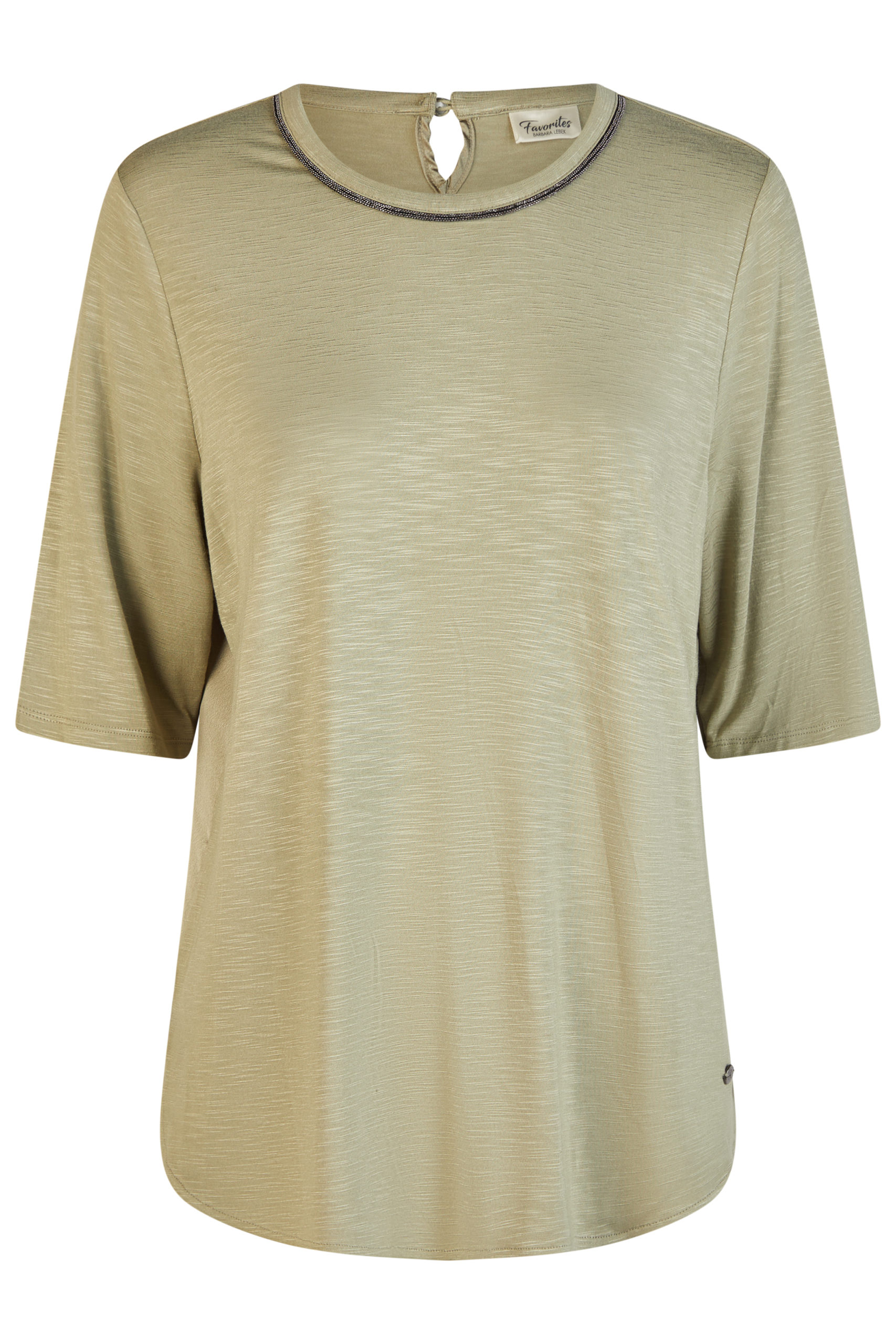 Tee-shirt long, fendu sur les côtés en arrondi, col rond, manches aux coudes