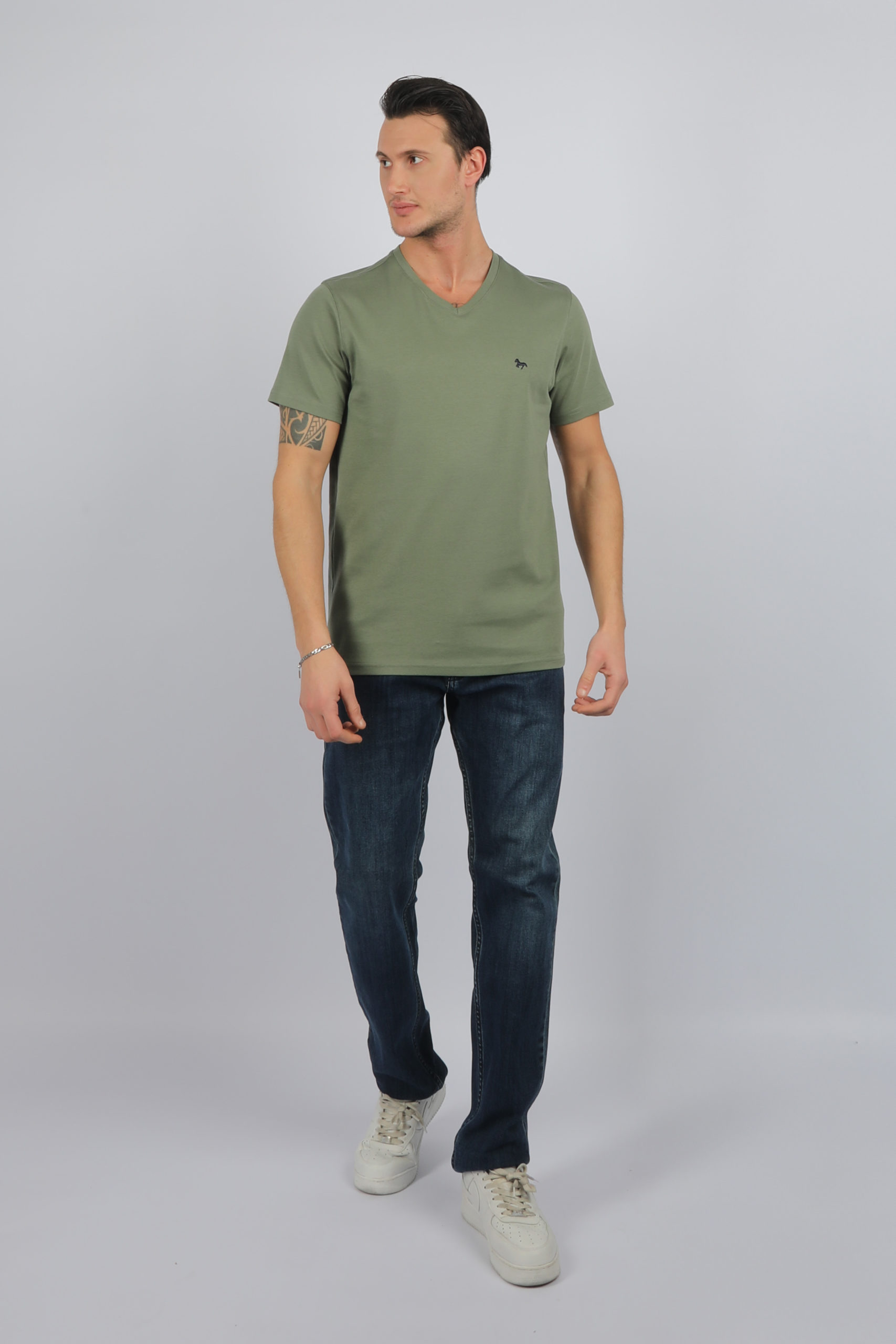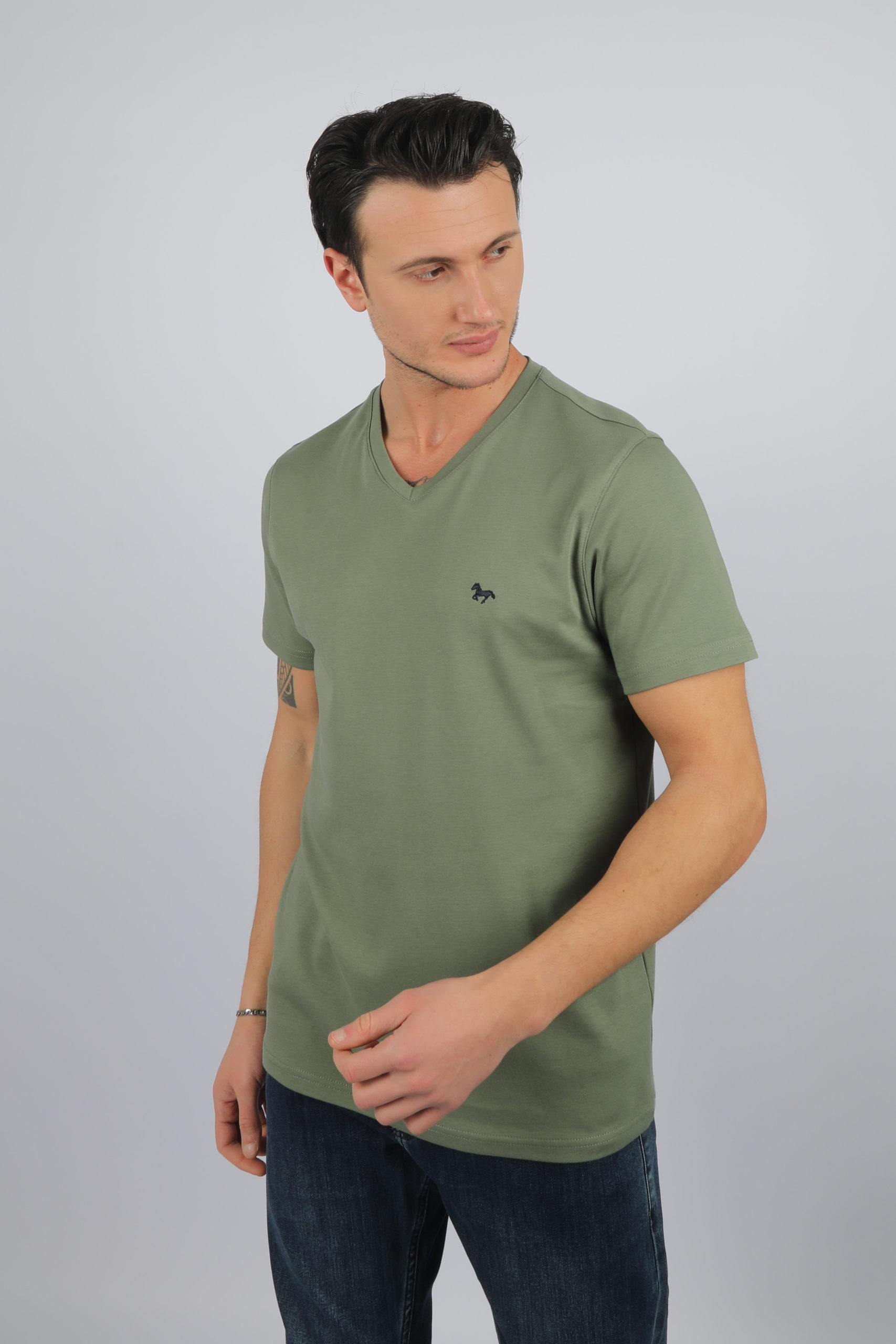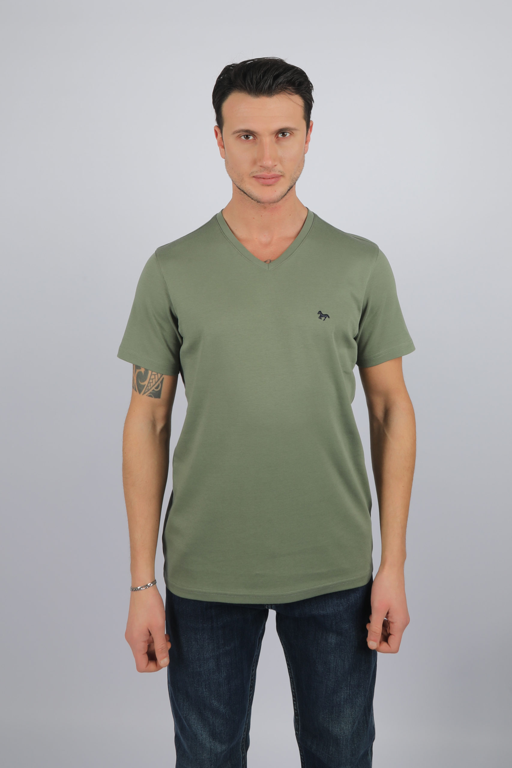 24001 Tee-shirt uni, col V, manches courtes 100% Coton