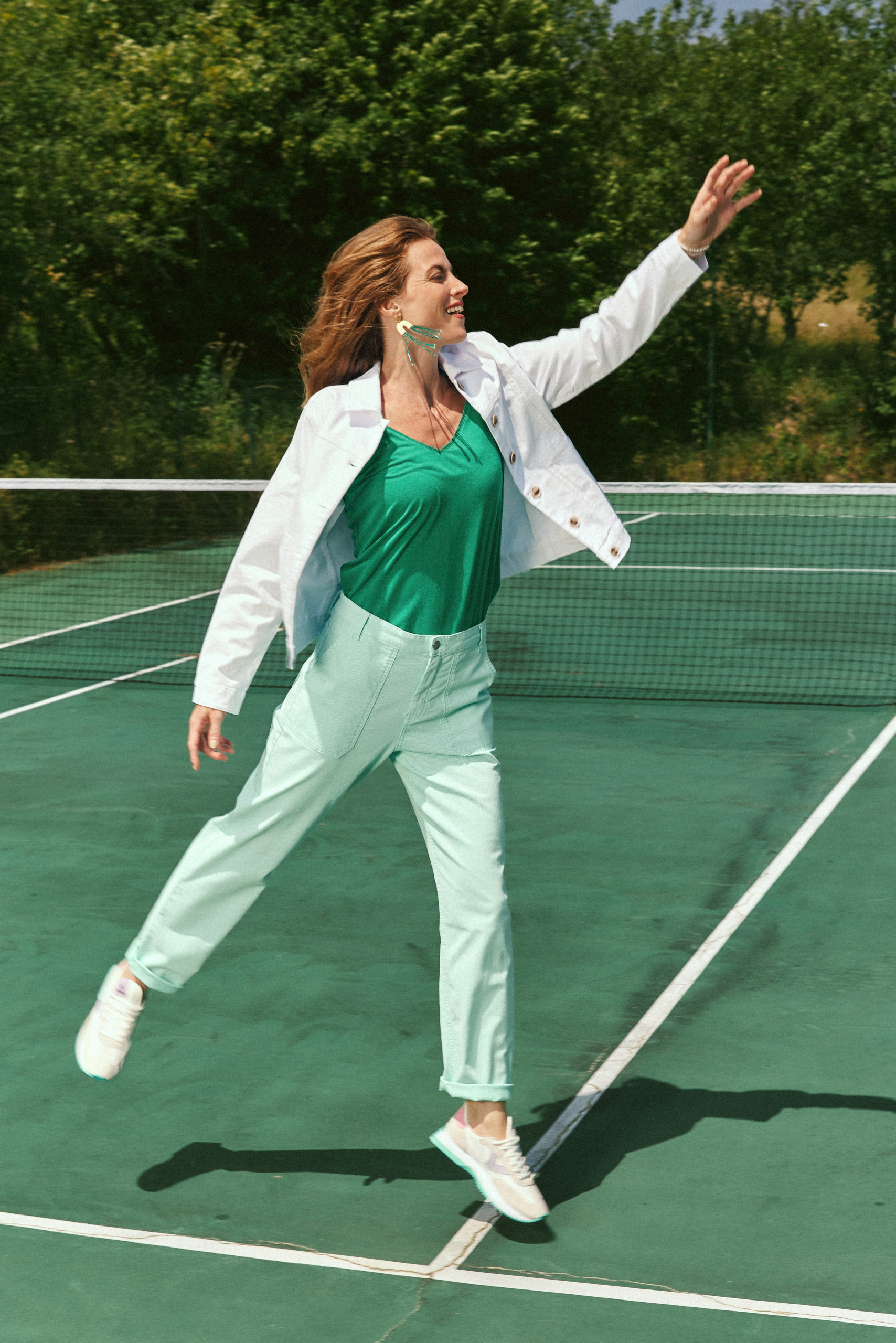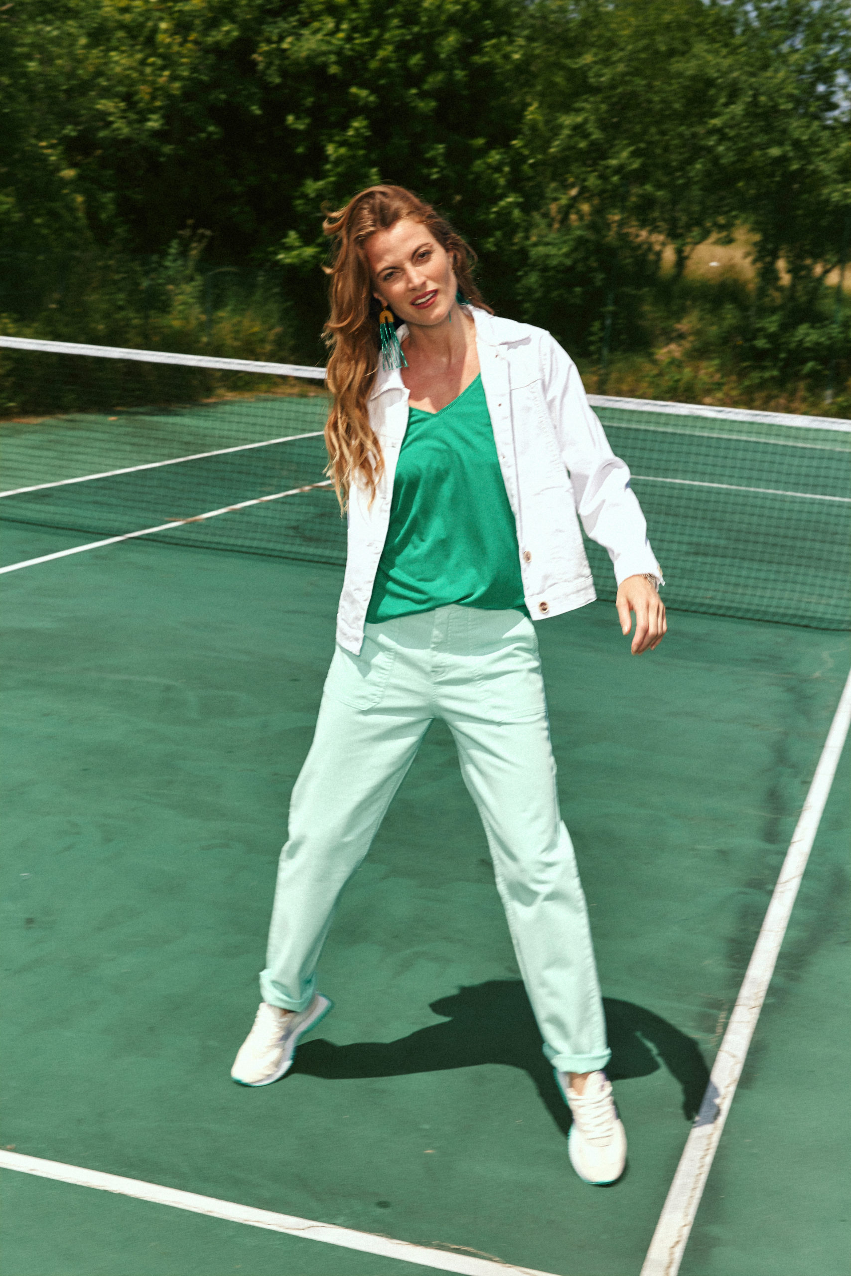 TS305 Tee-shirt uni, sobre, col V, manches courtes 70% Lyocell 30% Coton