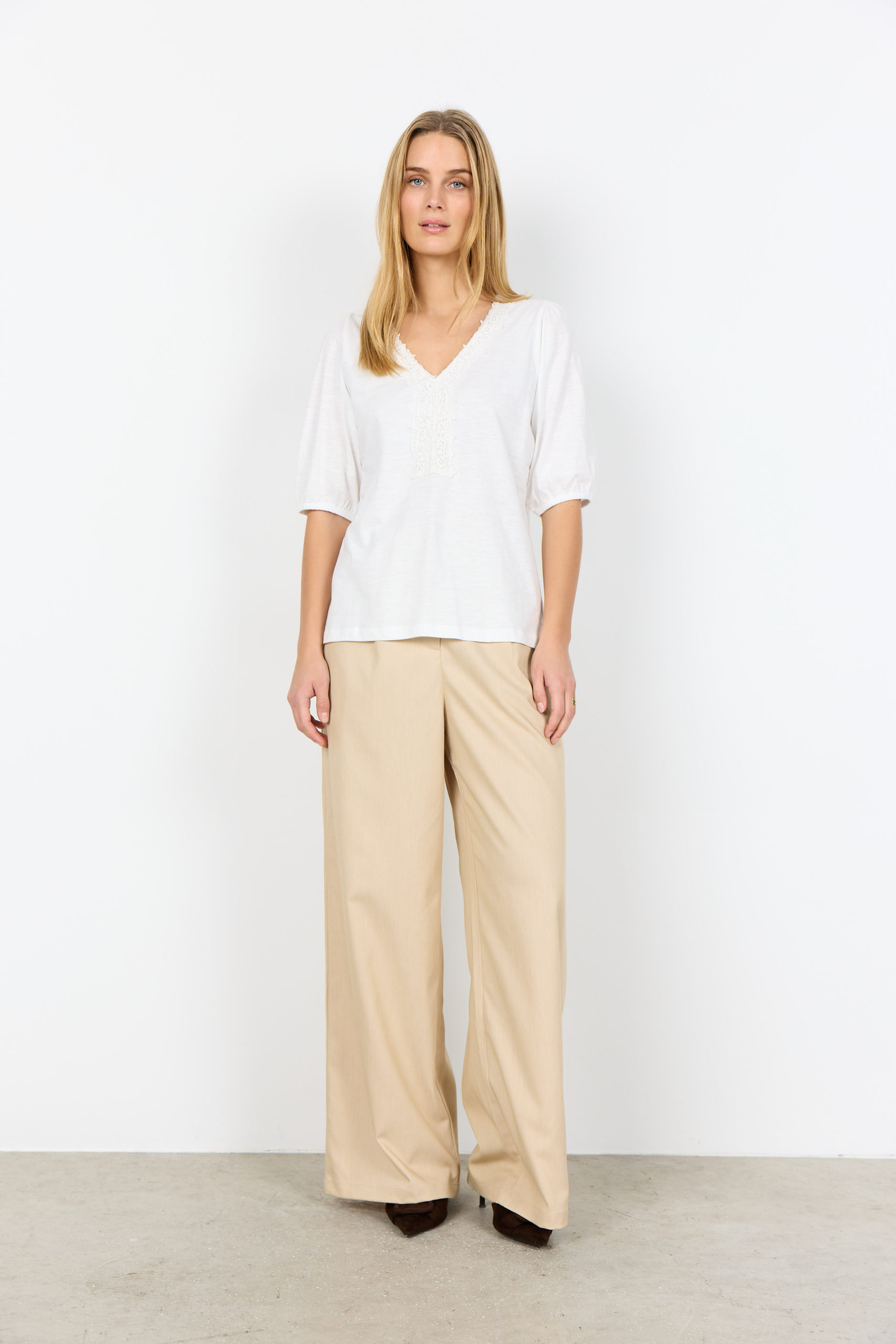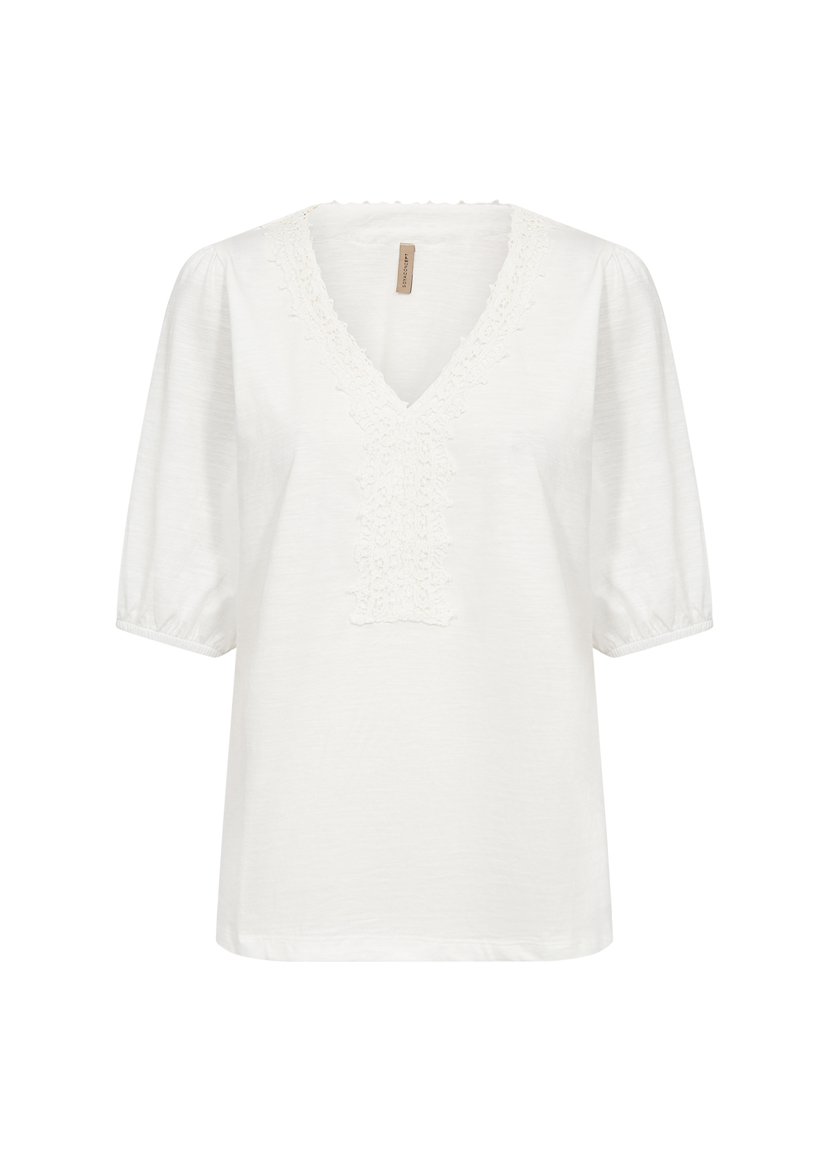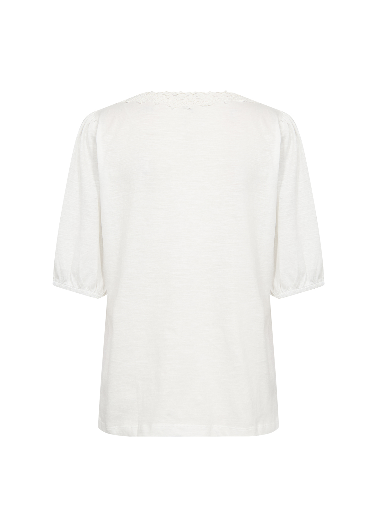 27507 Tee-shirt droit, col V, avec broderie, manches courtes 100% Coton organique