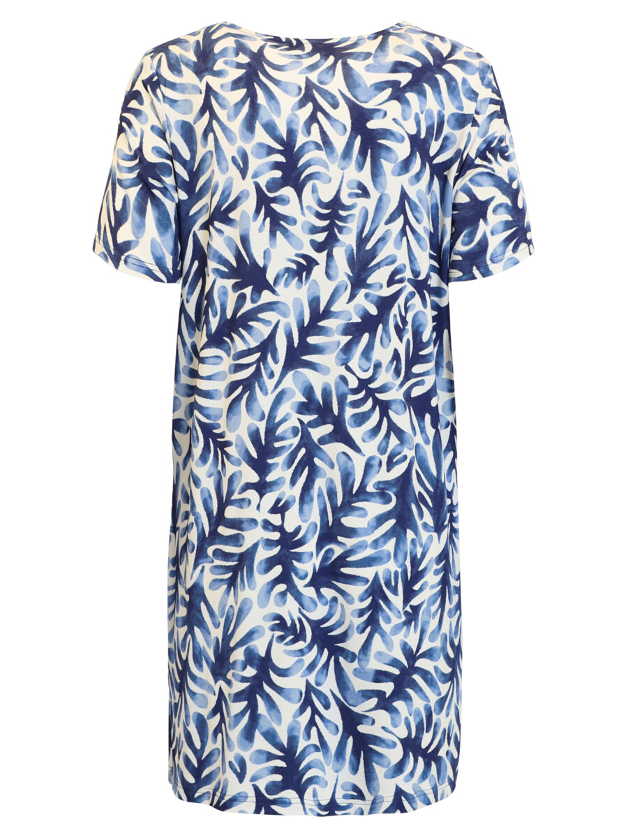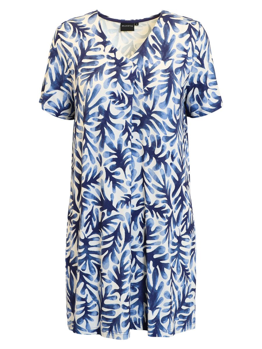 Tunique longue, (ou robe très courte), imprimée, col V, pli devant, manches courtes