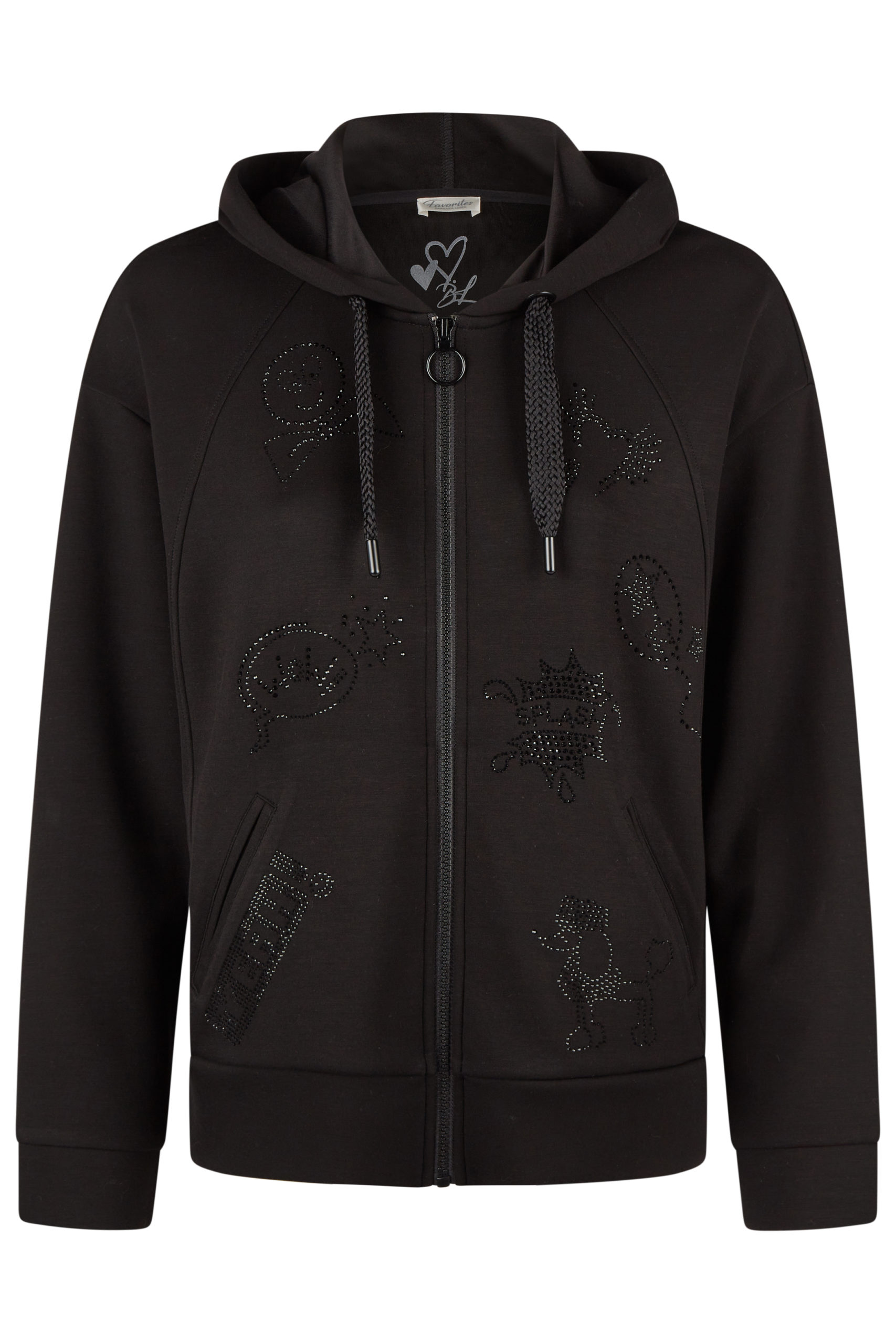 Veste sport-chic, avec strass, zippée, avec capuche et lien, 2 poches